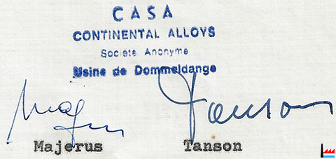 | 29.9.1969 | ![]() CONTINENTAL ALLOYS, S.A. - Usine de Dommeldange (Collection Ph. Aschman) CONTINENTAL ALLOYS, S.A. - Usine de Dommeldange (Collection Ph. Aschman) Majerus - Tanson |