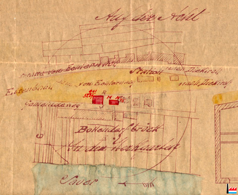 Bollendorf. 4. Dez. 1914 Feuersbrunst. Gestern Morgen wurden die zum Hotel Waldvilla gehörenden vom Metzger Fabry bewohnten Oekonomiegebäude ein Raub der Flammen. Das Vieh konnte gerettet werden, während sämtliche Futtervorräte, unter anderem gegen 70 Fuder Heu, dem Feuer zum Opfer fielen. (OMZ: 8.12.1914) |