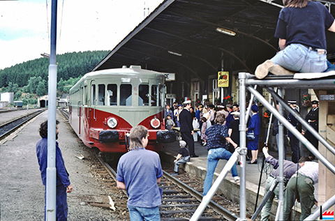 | 1988 | ![]() Gare de Troisvierges - renommée Rumelange, pour le tournage du film court-métrage Samsa "Terres rouges" - avec Thierry Van Werveke et l'autorail historique De Dietrich Z105 (Photos: 30.7.1988 Christian Schmitz) |