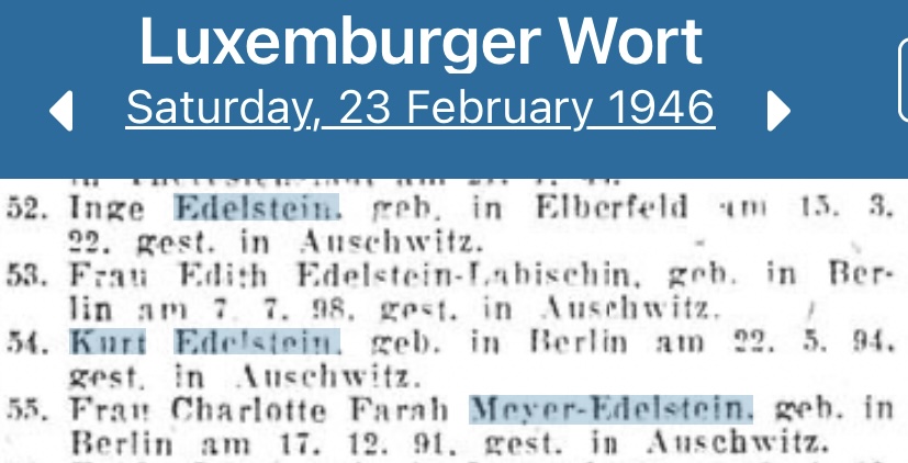 Here is an article of the tragic death of some members of the Edelstein family from Luxembourg in the concentration camp Auschwitz during WWII. How is their relationship?