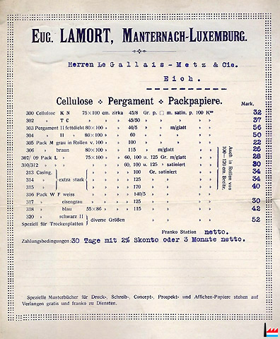 Papierfabrik und Holzschleiferei Manternach Eug. LAMORT