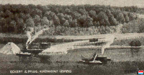 Baggereibetrieb in Erpeldingen - Dragage à Erpeldange (Extrait d'une gravure: Eckert & Pflug, Kunstanstalt Leipzig, collection: Serge Kugener)