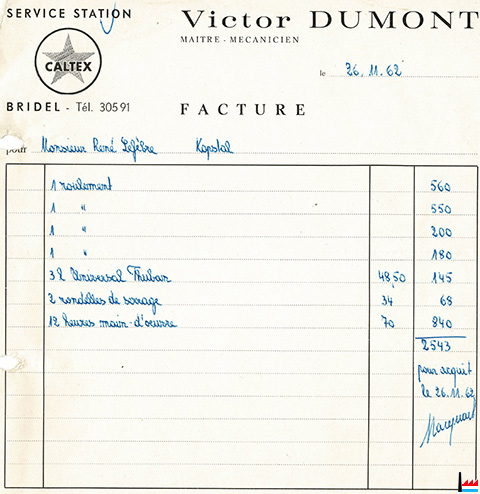 15.10.1961, 1962 | ![]() Service Station CALTEX, Bridel, rue de Luxembourg, Victor Dumont, maître-mécancien, tél: 30591 - 11.1962 (Collection: industrie.lu) |
