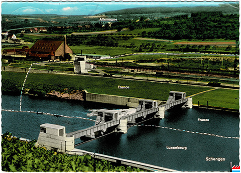 Ecluse d'Apach - <=1976 (Carte postale: Café E. Oudill-Gloden, Schengen / Moselle - Tél: 60085; collection: industrie.lu)