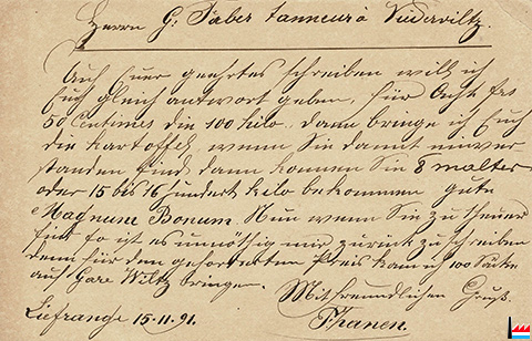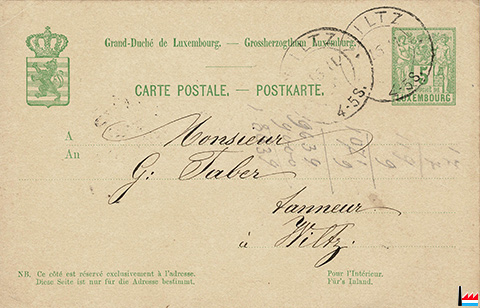 | 11.1891 | ![]() Faber G., tanneur à Niederwiltz - P. Zanen, Liefrange, 15.11.1891 (Collection: industrie.lu) |